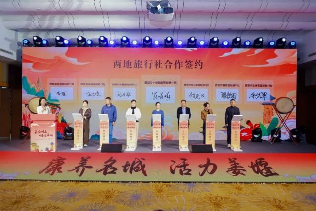 两地旅行社合作签约仪式将活动带入重要节点。陕西省友联国际旅行社、西安市兆瑞国际旅行社等多家西安旅行社与姜堰区溱湖文旅集团负责人上台签约,标志着两地文旅合作迈出坚实一步,未来将携手为游客提供更丰富的旅游产品和服务。