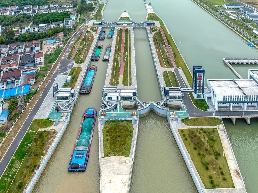 这里还是常州最大的饮用水源地,500万人的“生命泉”。旁边的船闸更是上演现实版“连通器实验”,船只穿梭如音符,谱写水与科技的协奏曲。