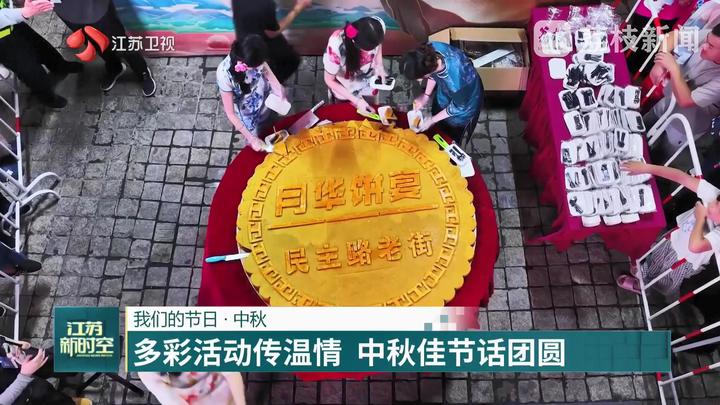 在徐州云龙区黄山街道梅园社区,一场专为辖区老年人打造的大团圆活动热闹开场。老人们挽起袖子包月饼,还各自带来看家菜凑成“团圆宴”,用最质朴的方式,过了一个满是烟火气的双节。在连云港民主路老街,一块直径一米五的巨型月饼惊艳亮相,人们站在街边细细品尝,欢声笑语与饼香交织在一起,节日的温情在老街巷陌间弥漫开来。在常州市中秋联谊会上,300余名在常台商、台胞、台青及台属欢聚一堂,共叙亲情乡谊。在泰州姜堰,多位外国友人与当地青年一起做月饼、制花灯,感受中国传统节日的独特魅力。