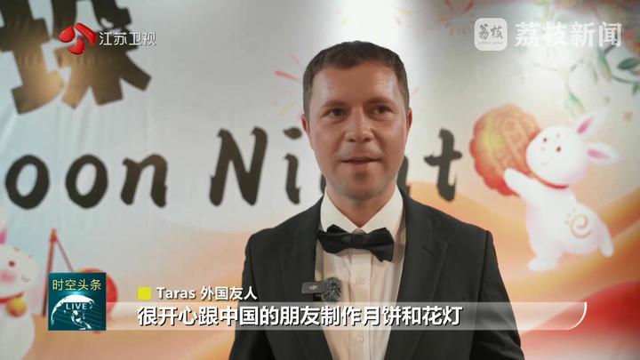 外国友人Taras说:“很开心跟中国的朋友制作月饼和花灯,很荣幸在这边体验了民俗活动。”