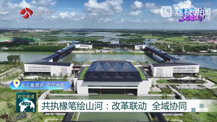 荔枝新闻中心记者文坤说:“太浦河上,沪苏浙三地交汇处,这座形似 ‘四合院’ 的方厅水院,就坐落在 ‘长三角原点’。而它所在的青浦、嘉善、吴江,自 2019 年起有了一个共同的名字——长三角生态绿色一体化发展示范区,这里是全国区域协同的 ‘试验田’。”