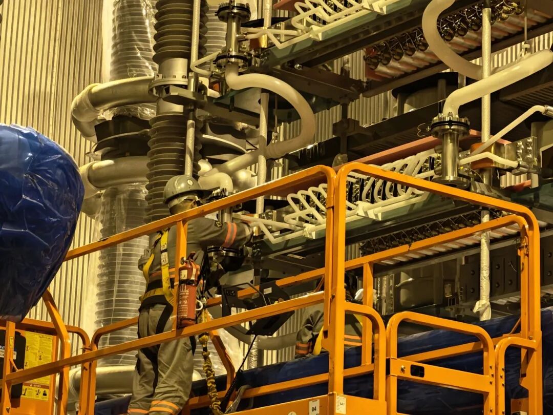 在送端伊瓜苏换流站,阀厅内换流阀如银色巨人般整齐林立,水冷管道蜿蜒穿梭。博瑞电力22名骨干组成的团队已驻场数月,全程保障核心设备安装。“第一阶段阀厅改造已于去年12月投运,目前极Ⅰ改造进入关键期。”项目负责人、直流工程部省区经理陈杰介绍,目前换流阀本体安装已基本结束,阀塔光缆敷设工作正在如火如荼地进行当中,极Ⅰ阀冷主设备安装也悄然进入了冲刺阶段。