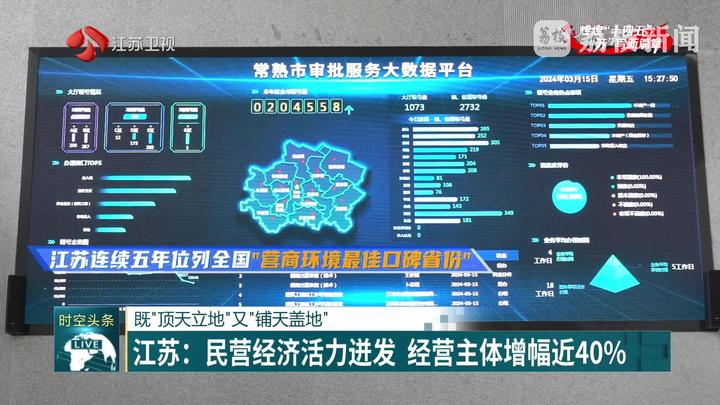 作为经济大省,“十四五”以来,江苏编制实施营商环境建设规划,出台优化营商环境条例、促进公平竞争条例、营商环境创新改革行动计划等法规政策,连续五年位列全国“营商环境最佳口碑省份”;“不见面审批”“一件事”改革等举措广受好评。政策的温度,直接转化为企业实打实的获得感。“十四五”以来,江苏成为全国首个在册个体工商户总量破千万的省份,经营主体增幅近40%;全省民营经济增加值位居全国首位,达到7.98万亿元,占GDP比重58.2%,为江苏产业高质量发展、科技创新、税收稳定、吸纳就业等作出了巨大贡献。
