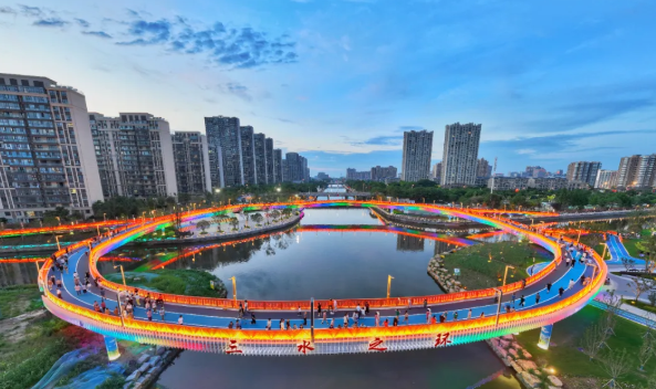 清晨的阳光洒在三水之环流线型桥面上,河水折射粼粼波光,晨练的市民、打卡的亲子家庭让这里充满生机。夏季火遍全网的姜湖宴虽已落幕,但它带来的城乡互动热度仍在延续。这场汇集全区十三“太保”乡村振兴成果的盛会,不仅让乡村美食、民俗走进城市中心,更成为城乡双向奔赴的“起点站”,让越来越多城里人主动将目光投向乡村。这场跨越城乡的互动盛宴,正是姜堰区破解“乡村资源难出圈、城市需求难落地”痛点的关键抓手,也让人们看到城乡融合从“单向流动”到“双向赋能”的深刻转变。姜堰区委党校讲师王楠说:“姜湖宴不只是一场夏日狂欢,更是全区十三‘太保’集中展示乡村振兴成果的‘窗口’。姜湖宴不仅让每个镇街的独特资源有了亮相的机会,还让城里人在家门口读懂乡村的厚重与鲜活。”