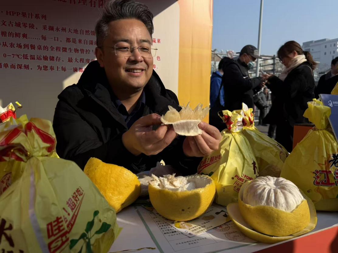 1月16日上午,由泰州和永州共同举办的“黑马冠军”双城特色市集在泰州老街北广场热闹开市。从湘江之畔到凤城河畔,永州脐橙的甘甜尚在泰州市民的味蕾留存,江永香柚、东安鸡、永州血鸭等地道“湘味”又跨越千里,与泰州早茶、姜堰大米、大泗牛肉等特色“苏味”舌尖联动,为两地球迷和市民送上别样的味蕾体验。此次市集从16日至18日,将持续三天。